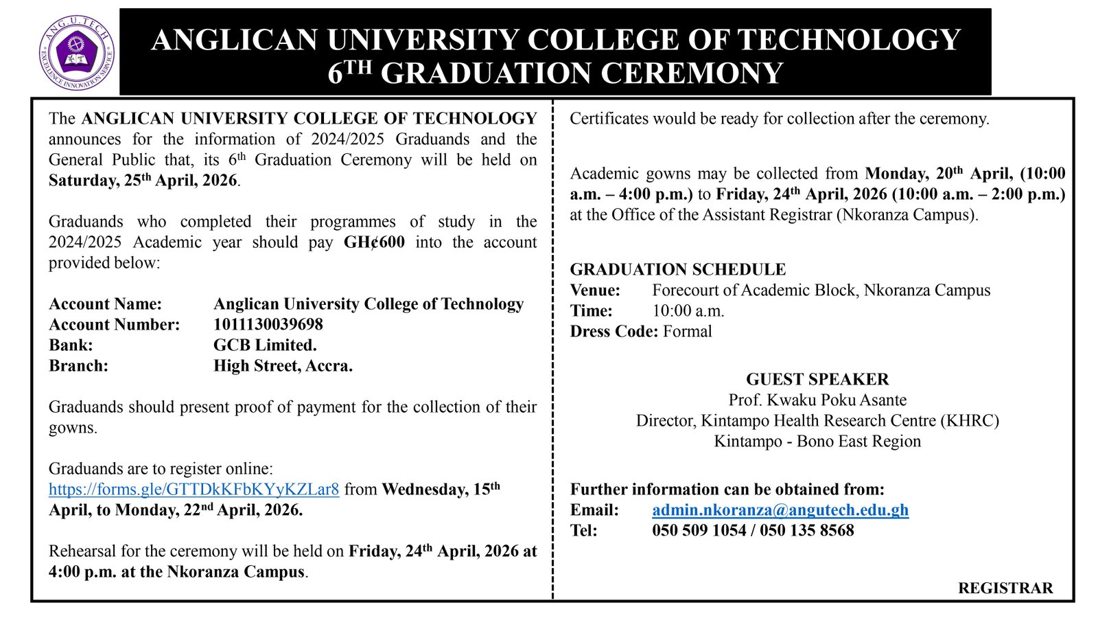 Phone: 0505091054 / 0322499822 Email: registrar@angutech.edu.gh